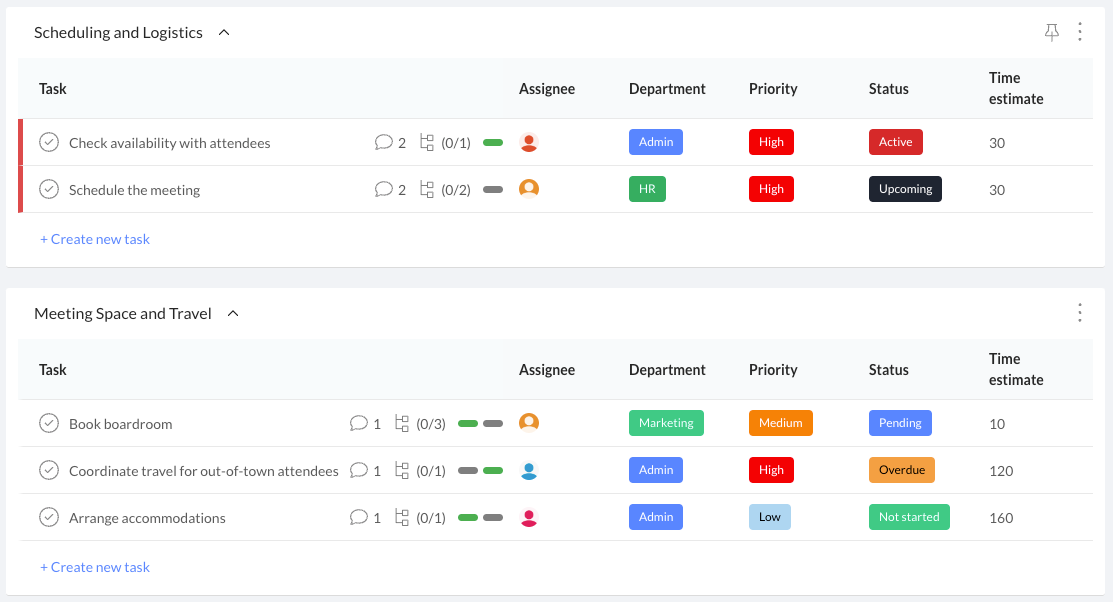 Planning: Use this tag to categorize tasks related to planning the meeting.